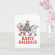 Celebrate the season in retro style with our "Happy Holidays" groovy festive trio card! Featuring a cheerful gingerbread house, a merry Christmas tree, and a jolly snowman, this playful design brings a burst of holiday joy. The inside delivers a heartfelt message, making it the perfect card to share warm wishes with friends and family. Spread festive cheer with this quirky, vintage-inspired holiday card!