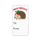 Happy Holidays! Gift tag featuring a cute Hedgehog wearing a green and red Christmas elf hat