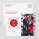 Happy Holidays, Love Peace Joy, Warmest Wishes Full Circle Greetings Typography On Red And White Vintage Ornate Classic Seal Holiday Photo Postcard.