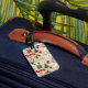 I was happy with the acrylic tag but it came with a thin leather strap to attach the tag to luggage (like a cat collar). I replaced the strap with a metal ring off of a key ring as the leather strap would come undone or break easily as luggage is sometimes handled without much care by airlines. Printing is great. Colours and positioning of the design I put on the tag were perfect. Very pleased.