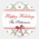 Happy Holidays Mistletoe Red Bow Custom Christmas Classic Round Sticker