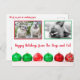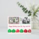 Personalised happy holidays cute modern postcard featuring a favourite photo of your pets, on white background with shiny red and green Christmas balls lined up underneath. You can easily personalise with two photos of your dogs, cats and/or family, adjust the greeting underneath accordingly (default set to Happy Holidays from the Dogs and Cat), and personalise the inside message and signature.