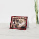 Design is composed of red and black plaid/tartan pattern. Add a custom photo of you with your pet cat. The photo is adorned above with unique gold greetings - "Meowwy Holidays"