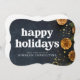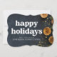 Happy Holidays Modern Stars and Golden Pine Cones Holiday Card