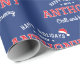 Get ready for Christmas with custom name wrapping paper! This festive design features sports jersey inspired typography, with a retro block font, a Santa hat, and stars. Personalise the template with the recipient's name, the year, plus you can customise the phrase 'Chill and be merry' with your own holiday message. This simple, stylish design is perfect for kids, teens, family, and friends! A seamless pattern gift wrap, available with a glossy or matte finish. Printed colours: dark blue, navy, red and white.