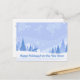 These beautiful winter home change of address postcards feature a pretty blue drawing of a snowy landscape with a forest of trees. Send these cute happy holidays new address cards to friends and family.