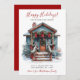 This rustic watercolor Happy Holidays new home for the holidays announcement card with a festively decorated wood front door with pine boughs and trees, a wreath, and red holiday bows would be perfect to send to your friends and family now that you have moved to a new home. The sentiment is customisable. Get enough so that everyone you know and love has your new address. They'll be so excited about your big move!