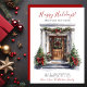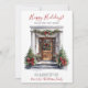 This watercolor Happy Holidays new home for the holidays announcement card with a festively decorated wood front door with pine garland, trees, a wreath, and red holiday bows would be perfect to send to your friends and family now that you have moved to a new home. The sentiment is customisable. Get enough so that everyone you know and love has your new address. They'll be so excited about your big move!