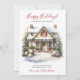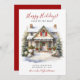 This watercolor Happy Holidays new home for the holidays announcement card with a festively decorated cottage with pine boughs, a wreath, red bows and trees would be perfect to send to your friends and family now that you have moved to a new home. The sentiment is customisable. Get enough so that everyone you know and love has your new address. They'll be so excited about your big move!