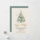 Modern Elegant Calligraphy Happy Holidays Script Christmas Tree Non Photo Christmas Cards. This festive simple minimalist Holiday cards features a watercolor christmas tree with decoration gold balls and confetti and a „Happy Holidays” greeting text which is written in a nice hand lettered font type in gold on cream white or beige background. On the reverse side golden glitter snow or sparkling gold confetti on dusty green background. This festive Custom Personalised Cards are a great way to remind loved ones that you're thinking of them this Winter Holiday Season.