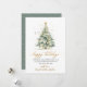 Modern Elegant Calligraphy Happy Holidays Script Christmas Tree Non Photo Christmas Cards. This festive simple minimalist Holiday cards features a watercolor christmas tree with decoration gold balls and confetti and a „Happy Holidays” greeting text which is written in a nice hand lettered font type in gold and white. On the reverse side golden glitter snow or sparkling gold confetti on dusty green background. This festive Custom Personalised Cards are a great way to remind loved ones that you're thinking of them this Winter Holiday Season.