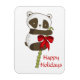 Adorable panda on bamboo with big red festive bow and "Happy Holidays" text