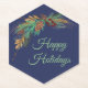 Happy holidays Paper Coaster. Blue & green Christmas wreath design