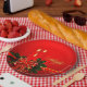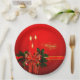 Add warmth and festivity to your home. Decorate your Christmas table with this chic and stylish paper plate that features three red candles, red and gold bow and christmas green leaves on a red background. Please feel free to customise it any way you want!
