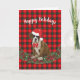 Happy Holidays Pet Boxer Puppy Plaid Santa Hat Holiday Card