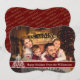 A modern photo Christmas card design with your family photo filling the card face. Fun modern art Christmas tree decor with dark red text band for your words.