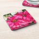 Happy Holidays Pink Poinsettias Floral Coaster