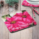 Hard plastic, beverage coaster set that features a photo image of pink, variegated Poinsettias, also known as the Christmas flower, along with holiday greetings printed in stylised text. A lovely, floral design for the holidays!