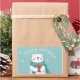 Adorable polar bear in a scarf hugging a tiny wrapped gift, surrounded by falling snow and a friendly “Happy Holidays” message.