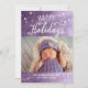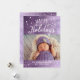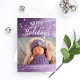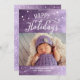 Send a sweet greeting with this photo holiday card featuring “Happy Holidays” in flowing script. A watercolor-style purple background with falling snow dots adds a cozy winter feel. Personalize with your favorite photo and family signature line for a simple, modern seasonal card. Back shows a coordinating purple snow dot pattern.