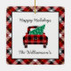 Happy Holidays Red Black Plaid Truck Tree Custom Ceramic Ornament