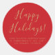 Happy Holidays red gold script simple address Classic Round Sticker