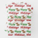 Wrapping paper sheets with happy holidays in 3D green and red text and a reindeer. Available in several styles and sizes.