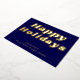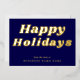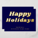 Happy Holidays Retro groovy Blue Gold Business Foil Holiday Card