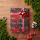 Happy Holidays text in a nautical rope design with snowflakes on black and red buffalo plaid background.