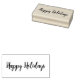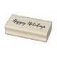This wooden rubber stamp is shown with a Happy Holidays phrase print.