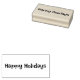 This wooden rubber stamp is shown with a Happy Holidays phrase print.