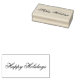 This wooden rubber stamp is shown with a Happy Holidays phrase print.