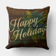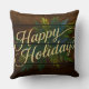 Happy Holidays Rustic Wooden Boards Painted Blue Cushion