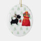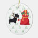 Celebrate the season in style with this charming ornament featuring a fashionable pup carrying a Christmas gift and a bag of presents. The elegant design captures the joy and warmth of the holidays with a modern, polished touch. Perfect for dog lovers and festive décor alike, the back reads “Happy Holidays” in a simple, chic font — a timeless message that makes this keepsake truly special.