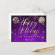 Happy Holidays Script Gold Snow Purple Spark Name Postcard