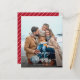 This is a budget modern and minimalist holiday card on a flat paper sheet. The design features a stylish single photo of a family and an elegant handwritten script font with the greeting “Happy Holidays”.