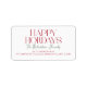Spread cheer and sophistication this season with this elegant Happy Holidays return address label. Designed with a modern blend of festive red and soft sage green typography, this label beautifully showcases your family name and address beneath a stylish Happy Holidays greeting. The clean, classic layout adds a polished touch to all your seasonal correspondence.