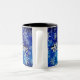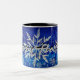 Beautiful snowflakes in silver & white on a multi-shade blue background. Happy Holidays is the greeting on this mug.