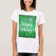 "Happy Holidays" is written in a whimsical font that can be customised to suit your needs. Three delicate snowflakes dance about a green background.