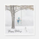 Cute Christmas snowman on a tree swing in winter with a white rabbit.