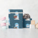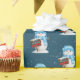 Cute snowman with Happy Holidays sign with snowflakes blue background.