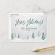 Rustic country holiday Postcards cards with "Happy Holidays" in a handwritten style along with your personalised family name or names and the year, all in pine green vintage typography. A beautiful scenic view of trees and winter snow in watercolor style artwork highlights the front of the card. The back of the card features text space for your personal holiday message or can be left blank for you to handwrite one if needed.