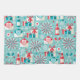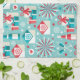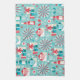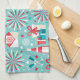 Happy Holidays Teal Blue and Red Pattern Tea Towel