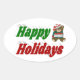 Happy Holidays Teddy Bear Christmas typography Oval Sticker
