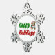 Happy Holidays Teddy Bear typography Snowflake Pewter Christmas Ornament