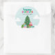Happy Holidays Tree with Gifts in Aqua Blue Classic Round Sticker