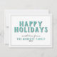 Happy holidays turquoise background and white typography Christmas card. The backside is turquoise with white snowflakes. The text is inside two frames - personalise the card with your name and year number.