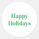 Happy Holidays white and green simple elegant Classic Round Stickers.