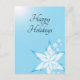 Featuring a blended colour pattern of blue and white with pointed snowflake graphics and a "Happy Holidays" message. Change the text, font, colour, size and placement for the best experience.