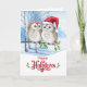 Happy Holidays and jingle OWL the way is the message on this playful greeting with a sense of whimsy, set in a winter setting with a merrymaking couple of owls.